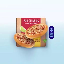 Caixa mista de esfirras, 12 unidades de carne, 4 de frango e 4 de calabresa com mussarela. Produtos congelados, pra você fazer a hora que quiser.