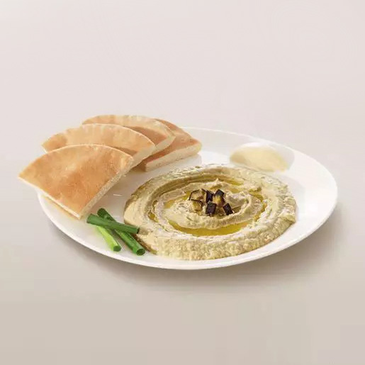 Pasta de berinjela temperada com tahine, sal, limão, alho e um toque apimentado de chilli. Acompanha nosso delicioso pão sírio.