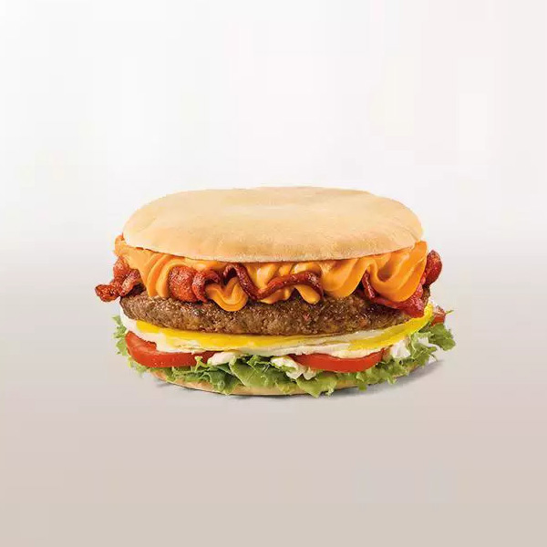 Beirute no pão sírio fresquinho, alface americana, maionese, tomate fatiado, hambúrguer, bacon sequinho e dois ovos. Tudo finalizado com uma porção generosa de queijo cheddar.